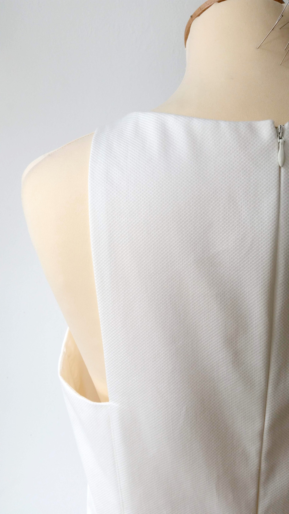 L’accent est mis sur le jeu des textures avec le rendu lisse et satiné du cuir et le relief du tweed mat. La transition est assurée par des incrustation de volants et de passepoils en cuir.