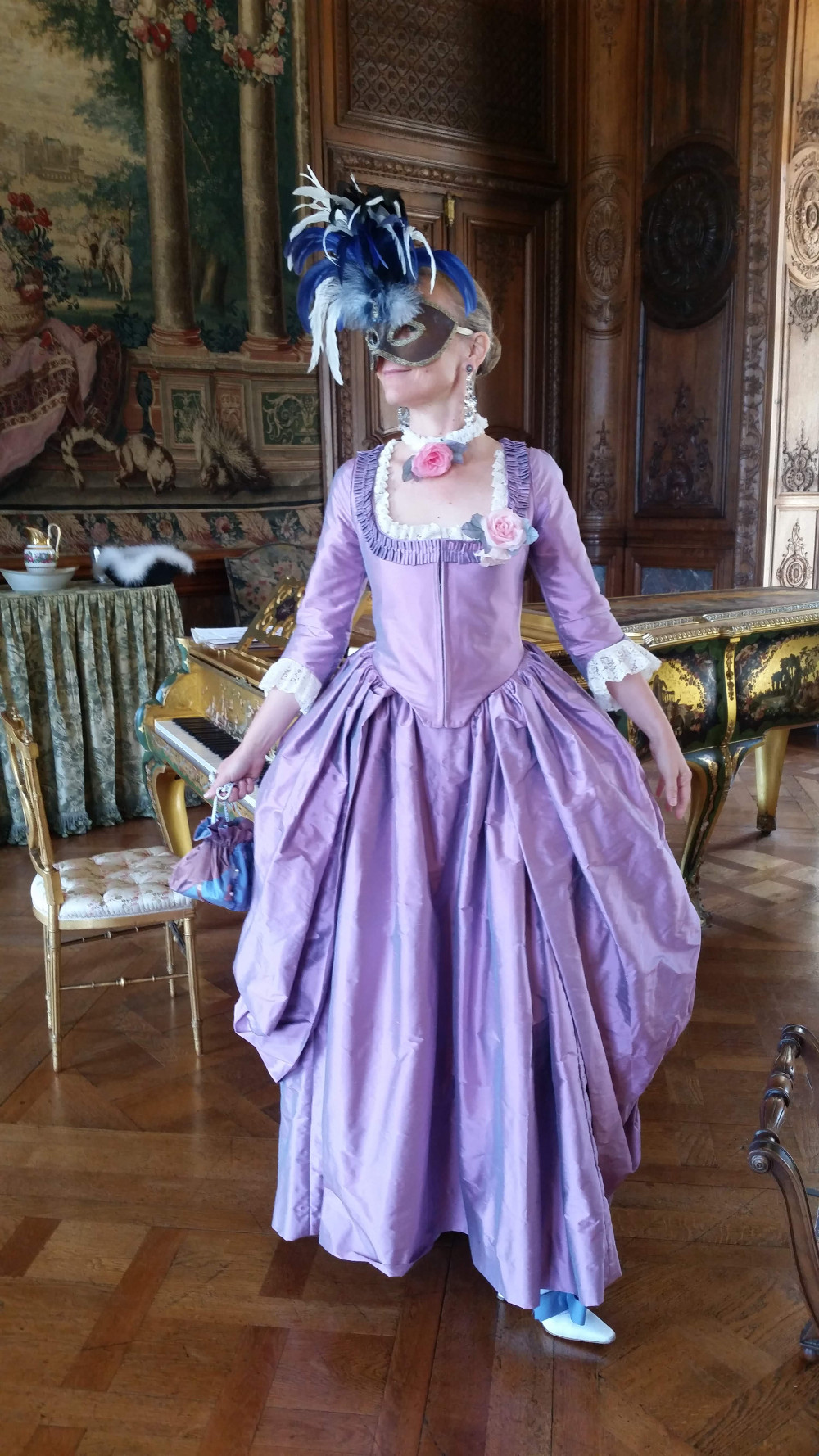 La 4e création conçue pour notre claveciniste/pianiste est un manteau de robe en taffetas bordé de dentelle assortie.