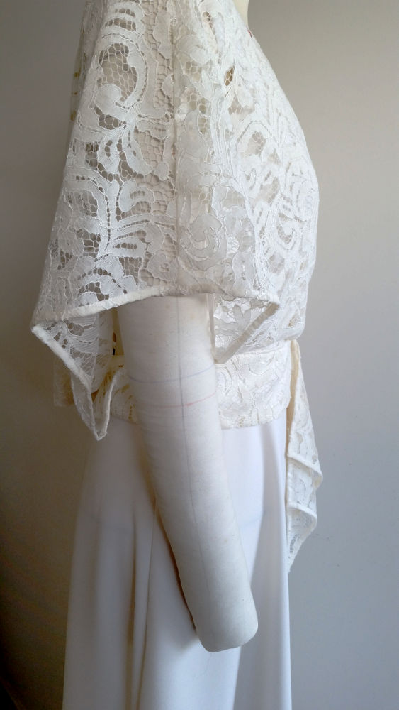 Le noir et blanc, ce sont aussi les couleurs qui nous restent des photos de l’époque. Comme toujours dans les créations sur mesure, les proportions de la robe ont été étudiées pour mettre en valeur la personne qui la porte.