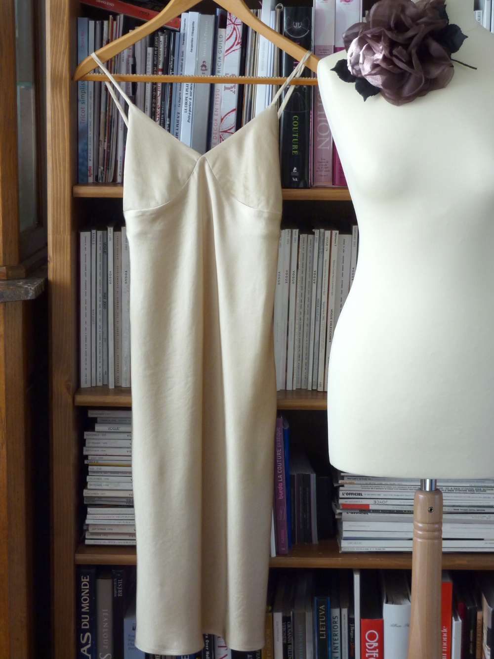 Le dessin c’est toujours le début de la réalisation. Puis, au fur et à mesure des essayages, certains éléments pourront être améliorés, car nous passons de l’idée au réel. Ici le décolleté a été modifié notamment pour s’adapter à la nature du tissu.