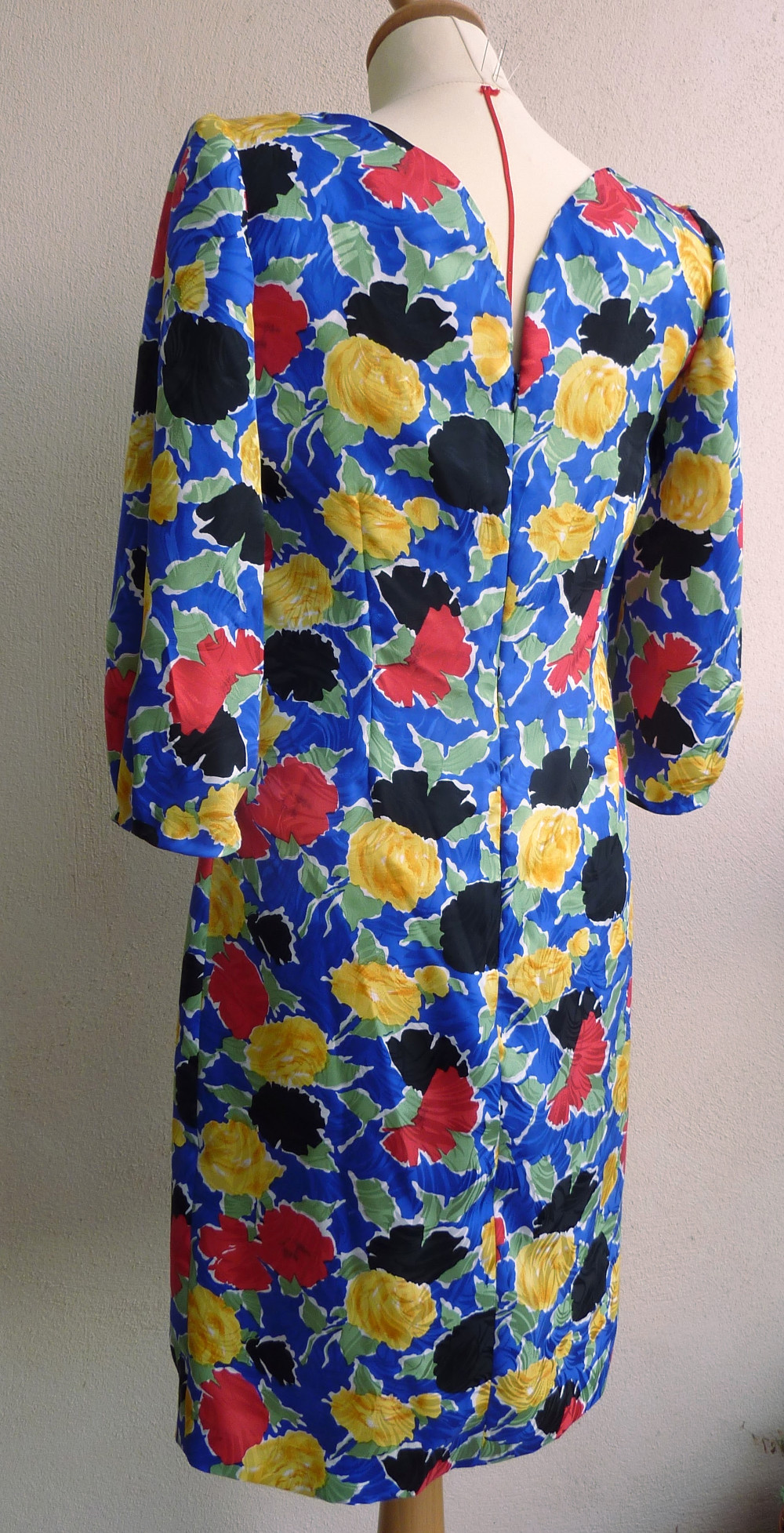 Voici une robe fourreau coupée dans une magnifique soie thaï de Jim Thompson. La coupe fourreau souligne les formes doucement et aucune sophistication n’est nécessaire dans ce tissu déjà très précieux par sa couleur et sa brillance.