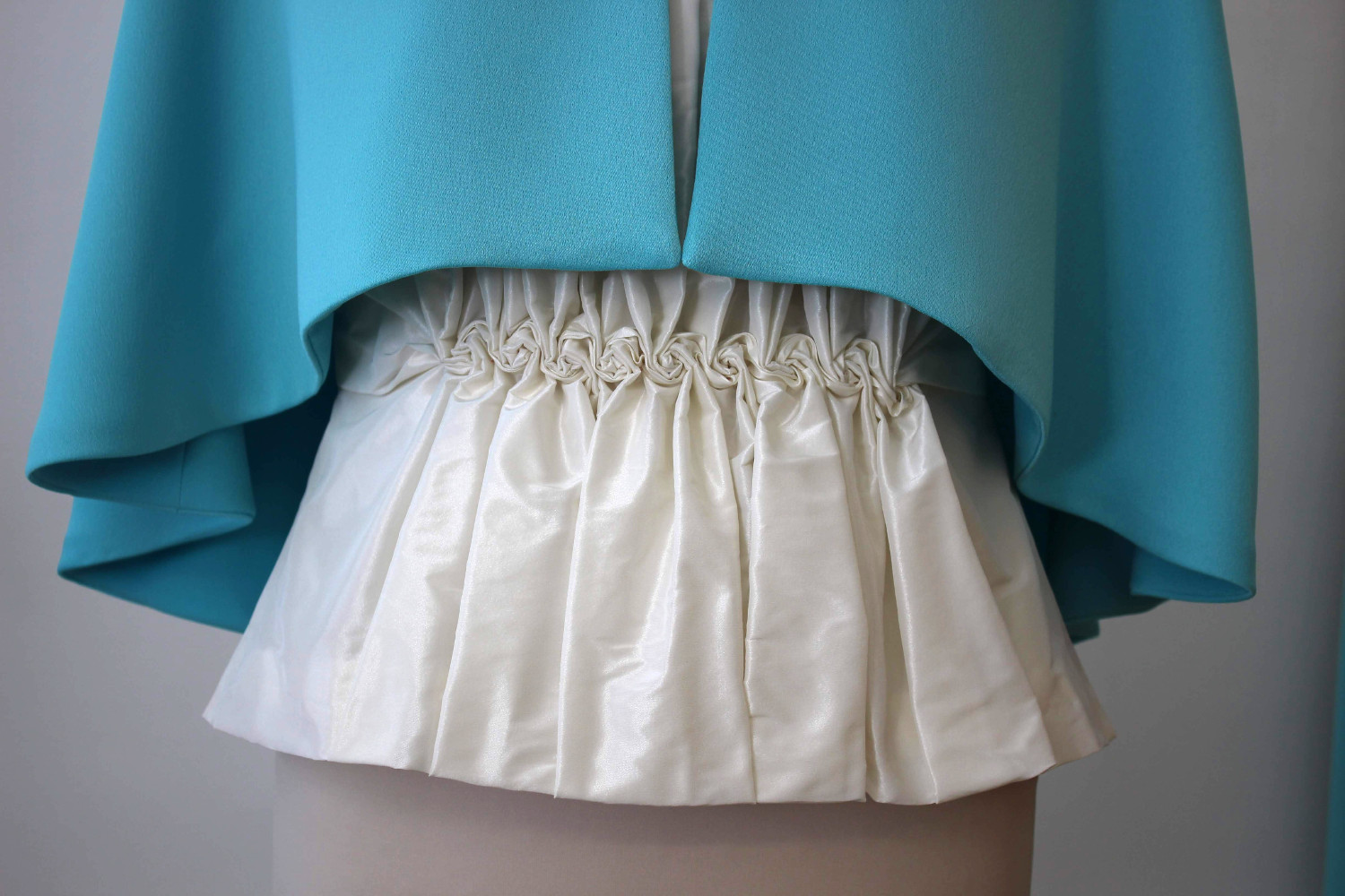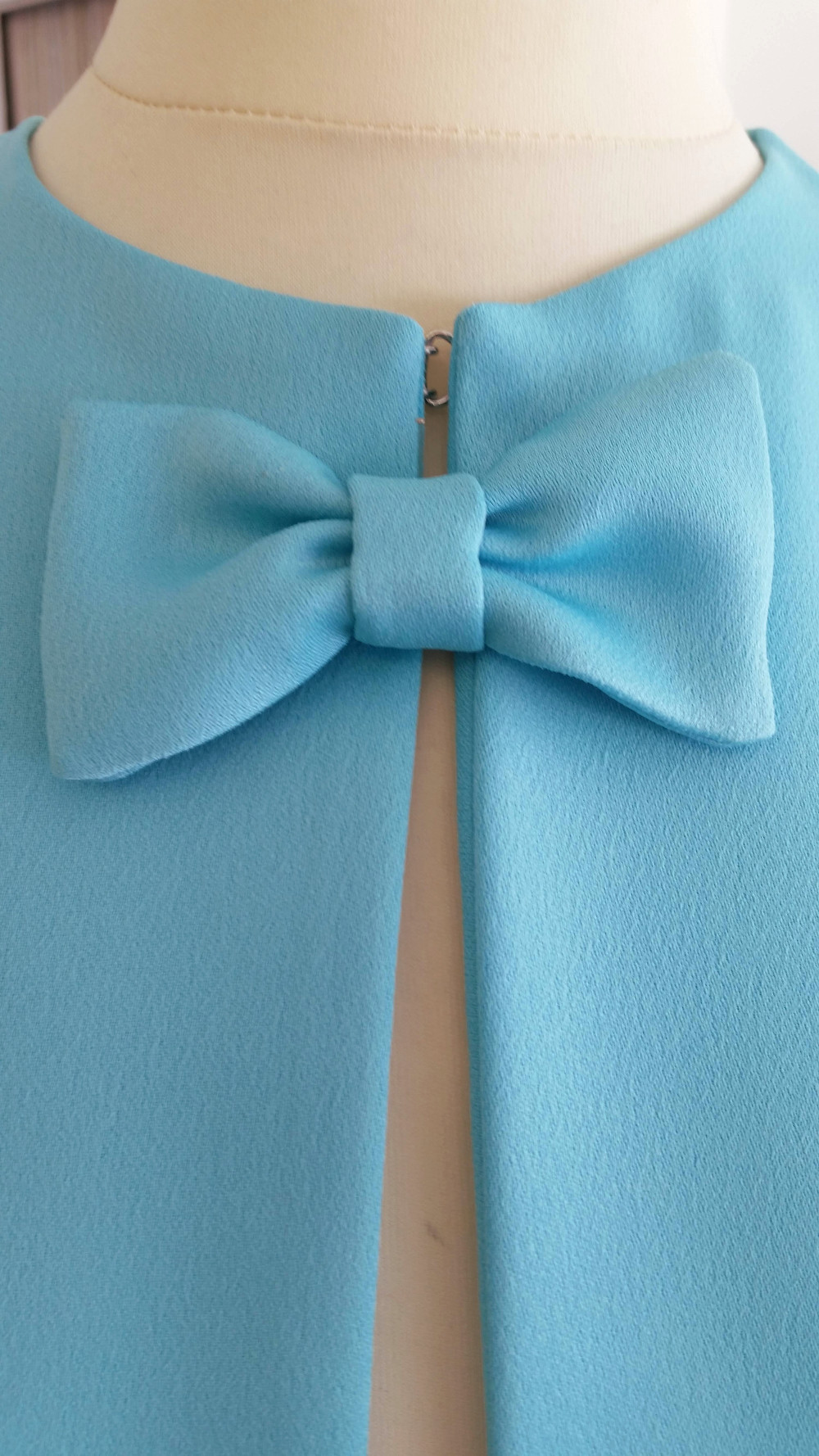 Voici une tenue confectionnée pour une maman de marié, avec la couleur du thème du mariage : le bleu iceberg.